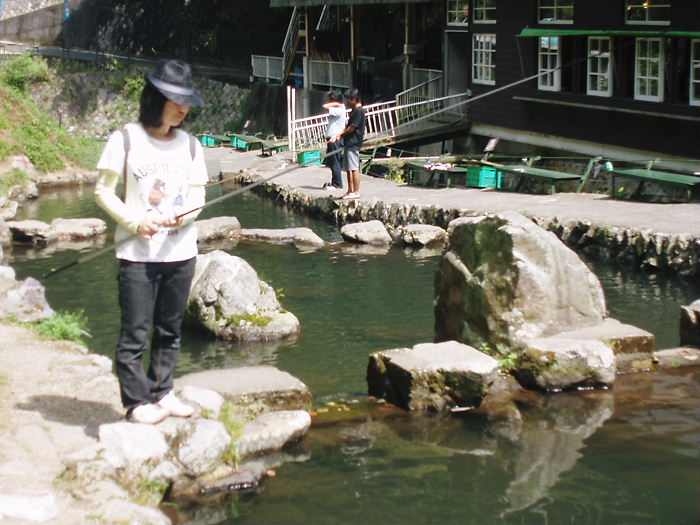 千早川のマス釣り場に行きました。3人の“チヌ’S エンジェルス”にせがまれて…